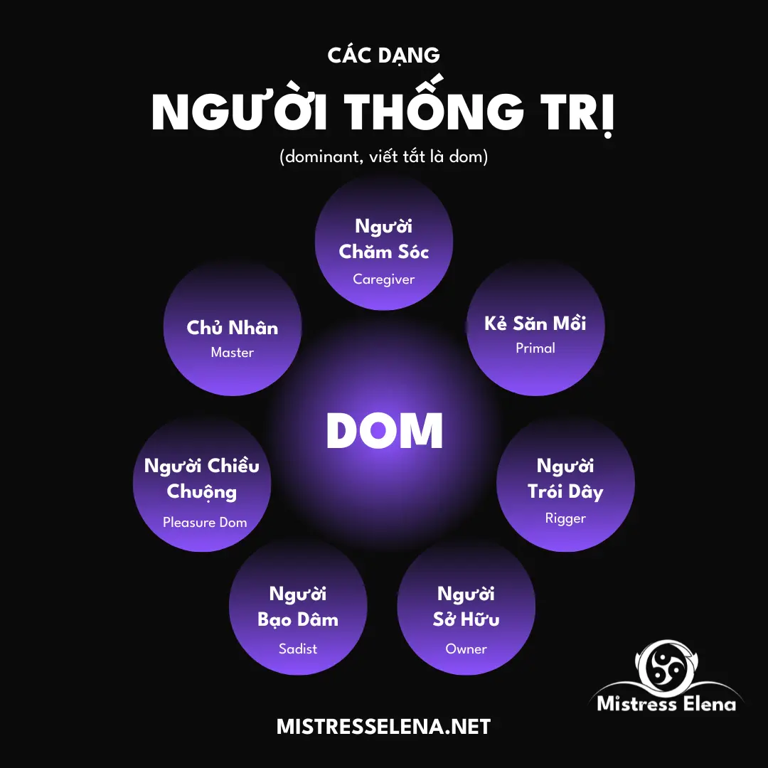 Trong thế giới BDSM, vai trò Người Thống Trị - Dominant (viết tắt là Dom) là người đảm nhận vai trò kiểm soát, hướng dẫn và thường xuyên chủ động trong các hoạt động tình dục hoặc trao đổi quyền lực (power exchange). Tuy nhiên, vai trò này không chỉ là ra lệnh hay thống trị — mà còn là trách nhiệm, sự thấu hiểu, và khả năng tạo cảm giác an toàn cho Người Phục Tùng - Submissive (viết tắt là Sub).