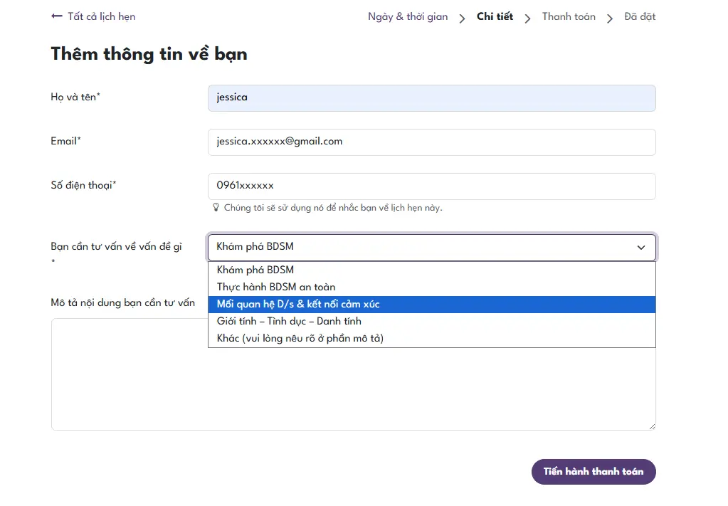 Hướng Dẫn Đặt Lịch Tư Vấn 1-1 với Mistress Elena