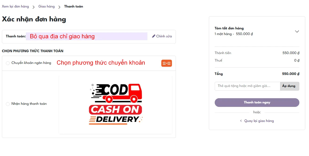 - Tại bước thanh toán, bạn không cần ghi đúng địa chỉ nhận hàng, chỉ cần điền đầy đủ để hệ thống xử lý.