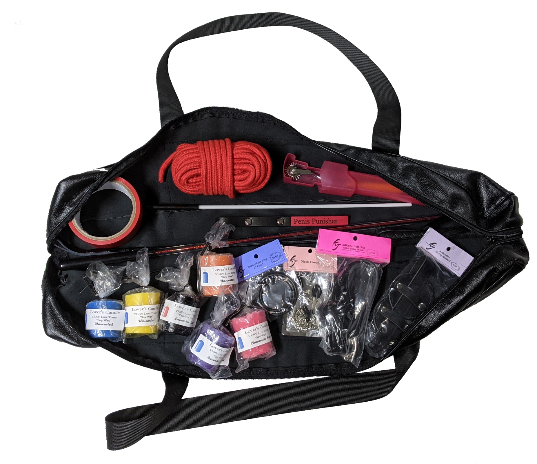 - Dây, còng tay, roi da, nến, máy rung, kẹp ti, bịt mắt, gag, phích cắm lỗ hậu...