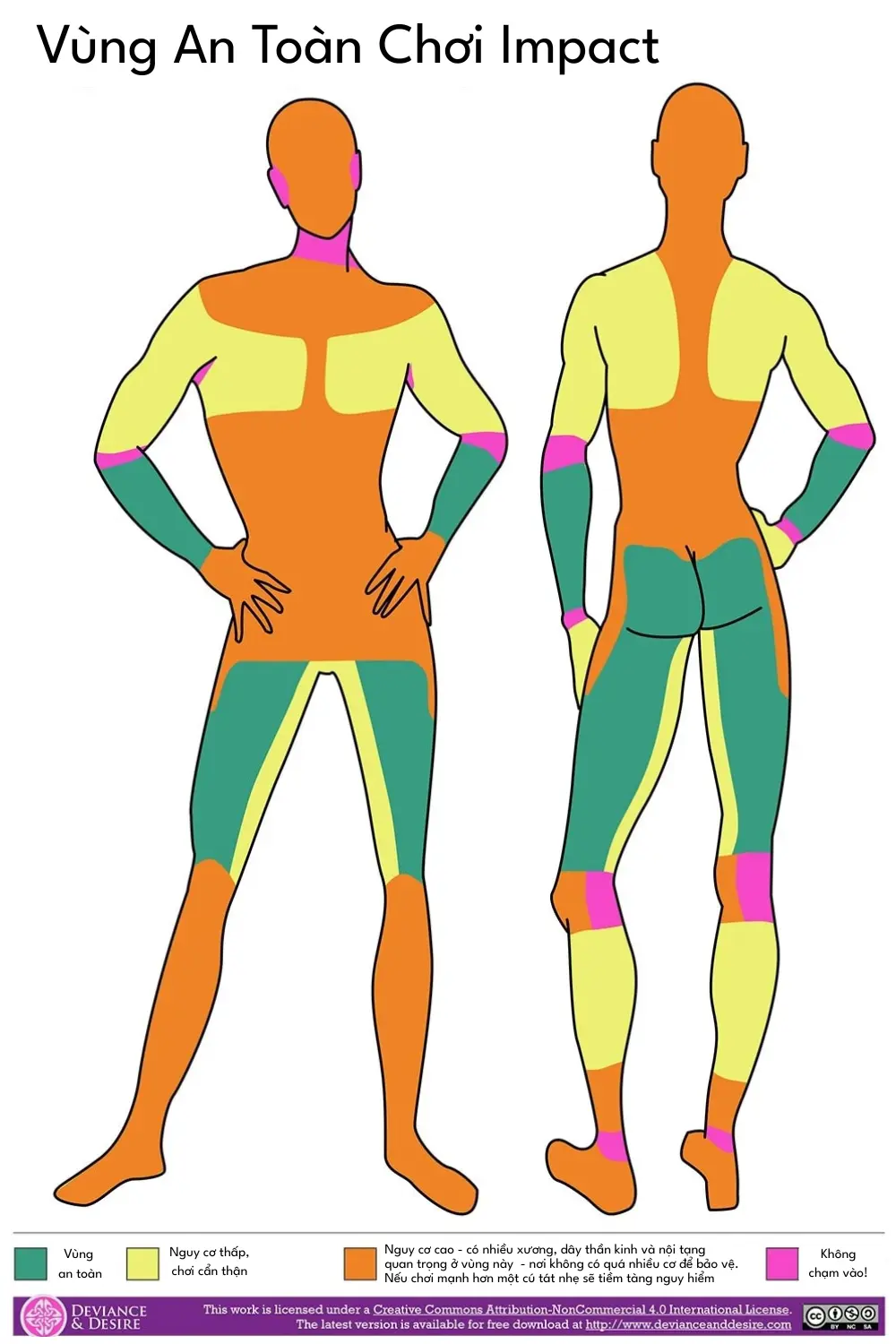 Để đảm bảo an toàn khi thực hiện impact play, cần tránh những khu vực nhạy cảm dễ gây tổn thương và tập trung vào các vị trí được coi là "an toàn."